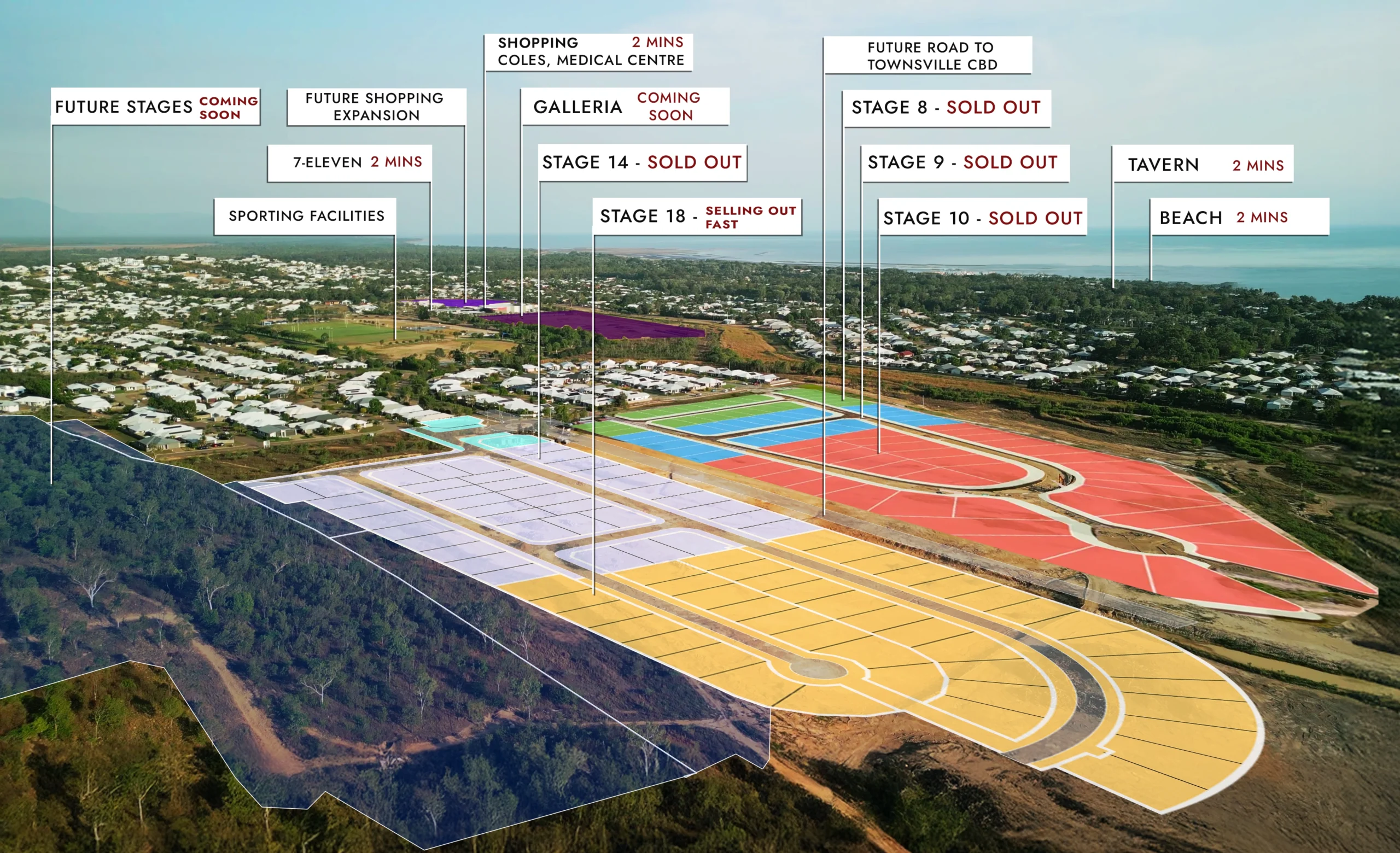 Bushland Beach is a growing beachside residential community built for modern coastal living. Stages 8, 9, and 10 are sold out, with Stages 14 and 18 close to selling out and more stages to come, highlighting the strong demand for this highly sought-after location.